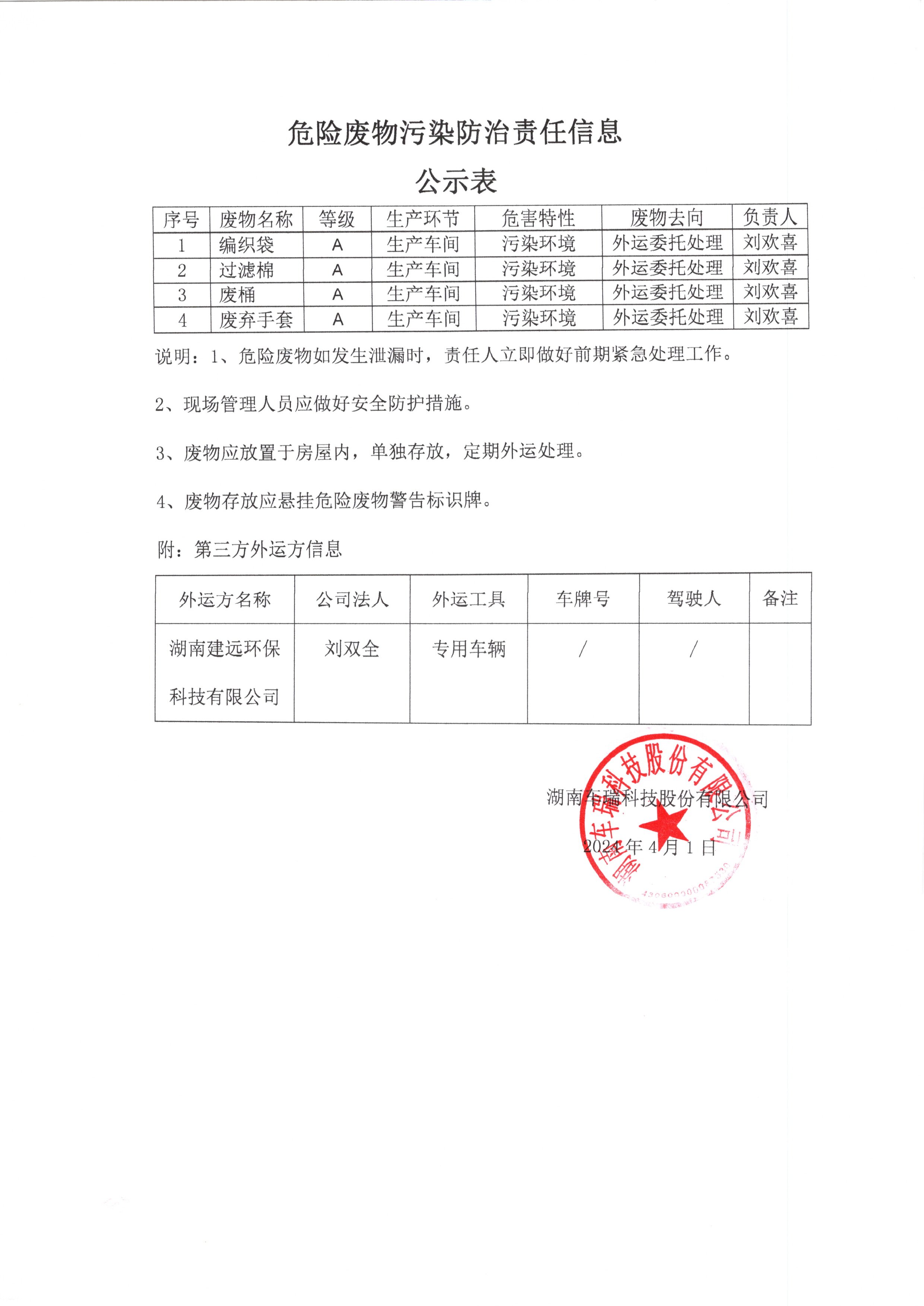 【危险废物污染防治责任信息】公示表