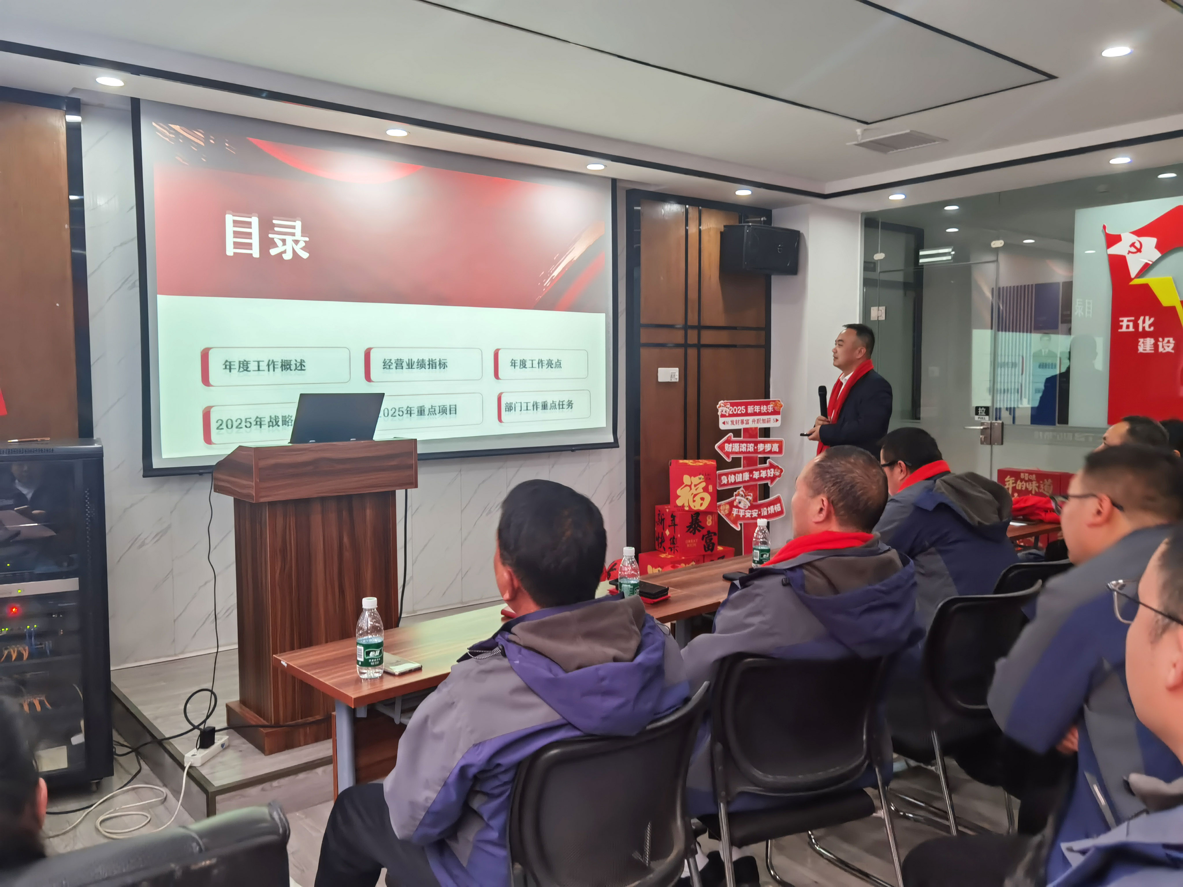 紧接着,各部门负责人依次登台,涵盖市场部、技术部、质量部、生产部、财务部、人事部等关键部门。他们条理清晰地阐述本部门过去一年的工作完成情况,毫无保留地分享工作推进过程中遭遇的难点问题,以及针对 2025 年精心制定的工作计划。部门间的经验交流与成果展示,犹如拼图的各个板块,让大家对公司的整体运作和未来规划有了更为清晰、全面、完整的认识。
